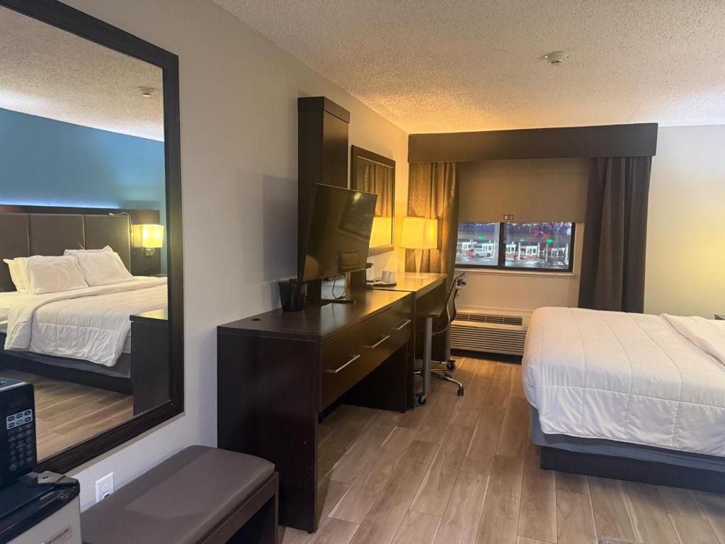 Here at the Quality Inn and Suites in Romulus, we put the capital H in Hospitality. You can enjoy a free shuttle to the Detroit Metropolitan airport, complimentary breakfast, free high speed internet, and so much more. Each room offers a refrigerator, microwave, coffee, hairdryer, and many other amenities. Our staff is here to ensure your stay is comfortable, affordable, and enjoyable. Nearby, you can take a short trip to: • Comerica Park • Ford Field • Little Caesars Arena • Detroit Opera House • Detroit Zoo • Henry Ford History Museum • All Downtown Casinos • Ann Arbor Hands-On Museum Don’t forget to book an extra stay at the end of your trip to rejuvenate before you head home! We are excited to help you make memories at your home away from home! Ask us how you can earn points towards a free stay with Choice Privileges!