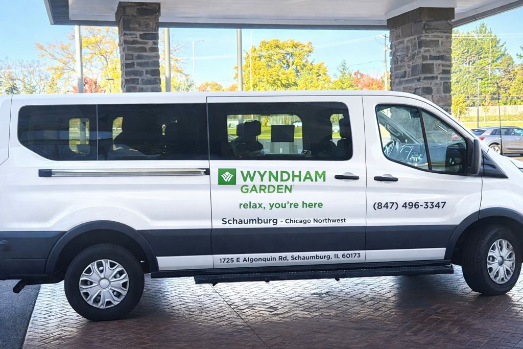 Shuttle hours range from **6am until 1pm** and **7pm till 1am daily**. For shuttle pick up from O'Hare, please be ready at Terminal 2, gate C. There are two shuttle vans please look for Wyndham Garden Schaumburg written on the side.